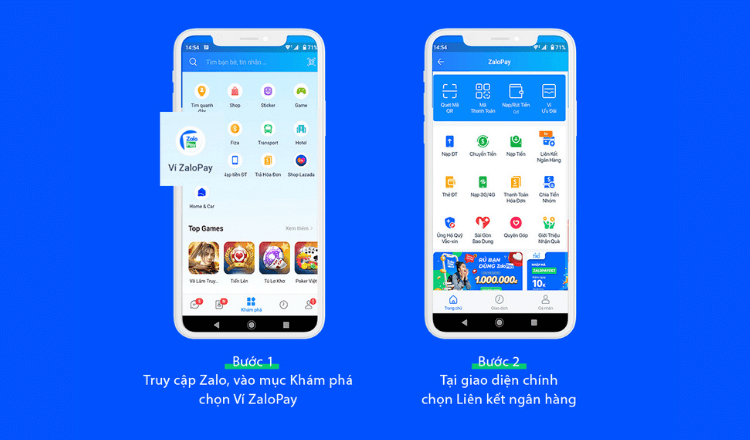 Cách 1: Liên kết tài khoản ngân hàng ngay tại ứng dụng Zalo.