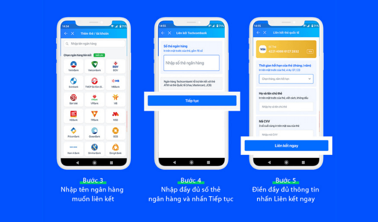 Các bước tiếp theo tương tự như cách liên kết tài khoản ngân hàng trên Zalo.