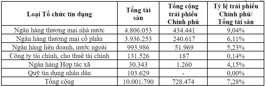 Khối lượng nắm giữ trái phiếu Chính phủ | 161.249 | 262.880 | 348.562 | 453.220 | 520.813 | 682.290 | 728.287 |