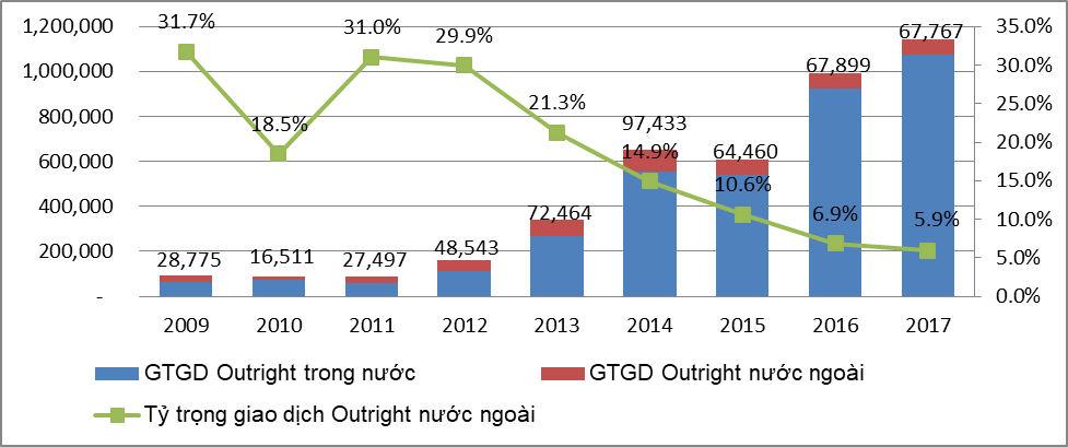 Giao dịch Outright của NĐT nước ngoài qua các năm